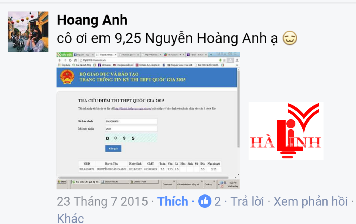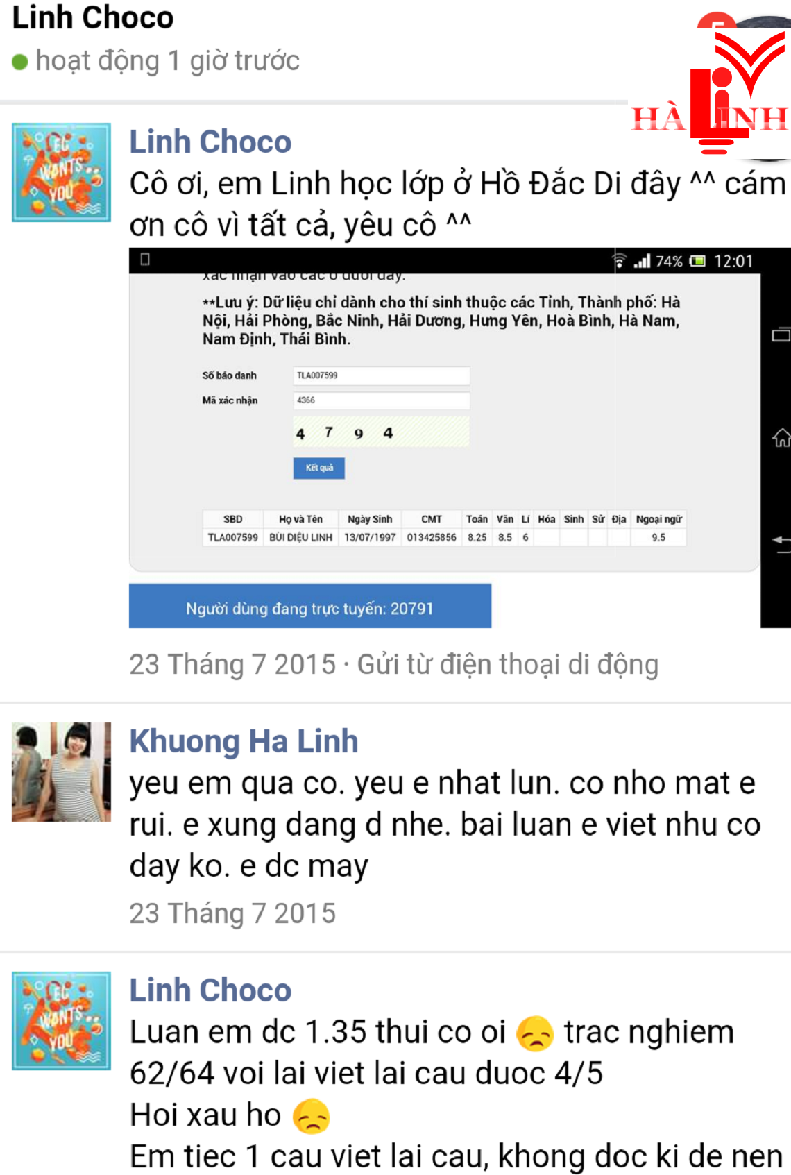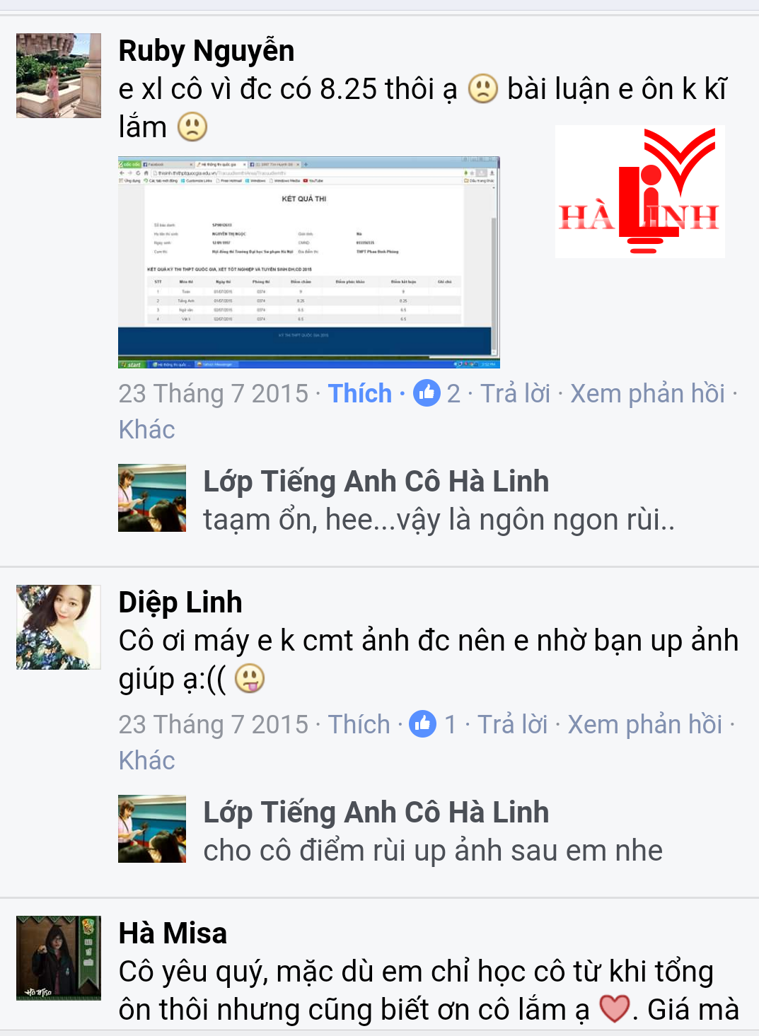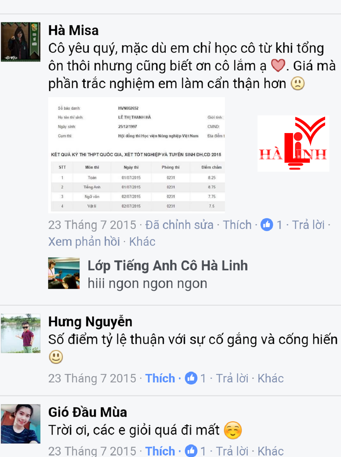 Sau nhiều năm kinh nghiệm, và ko ngừng áp dụng những phương pháp dạy tiếng Anh hay ở Đại Học, hs lớp cô Hà Linh không chỉ điểm thi cao, mà còn cực kỳ có phong cách.