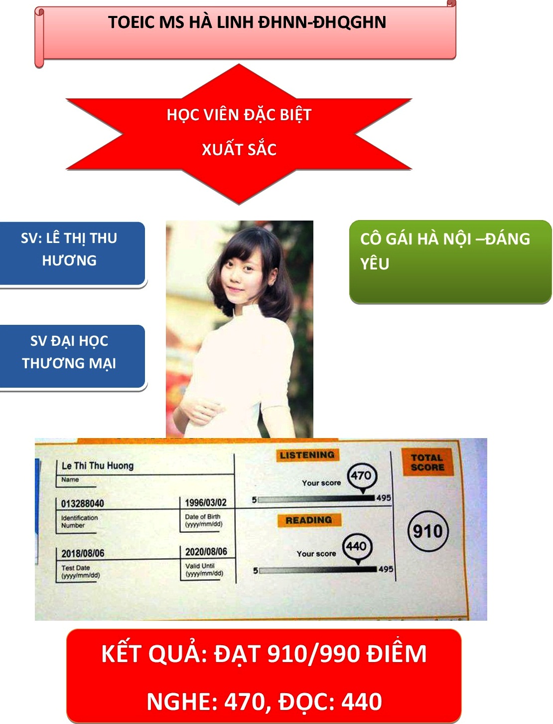 Vậy là chỉ cần 1 khóa học từ việc chưa biết gì về TOEIC em đã đạt 910 điểm ngay lần thi đầu tiên..! thật TUYỆT VỜI.